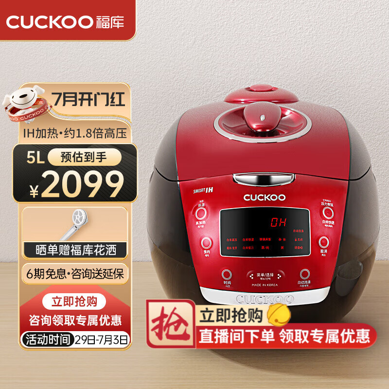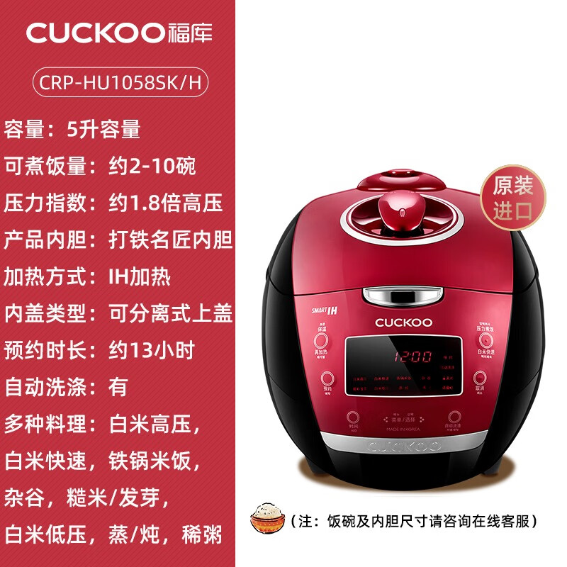 福库(CUCKOO)柴火饭电饭煲家用5-8个人韩国原装进口5升大容量电饭锅IH电磁加热预约语音高压多功能打铁名匠内胆 HU1058SK/H 新包装 (2-10人) 5L价格:2599.00元!