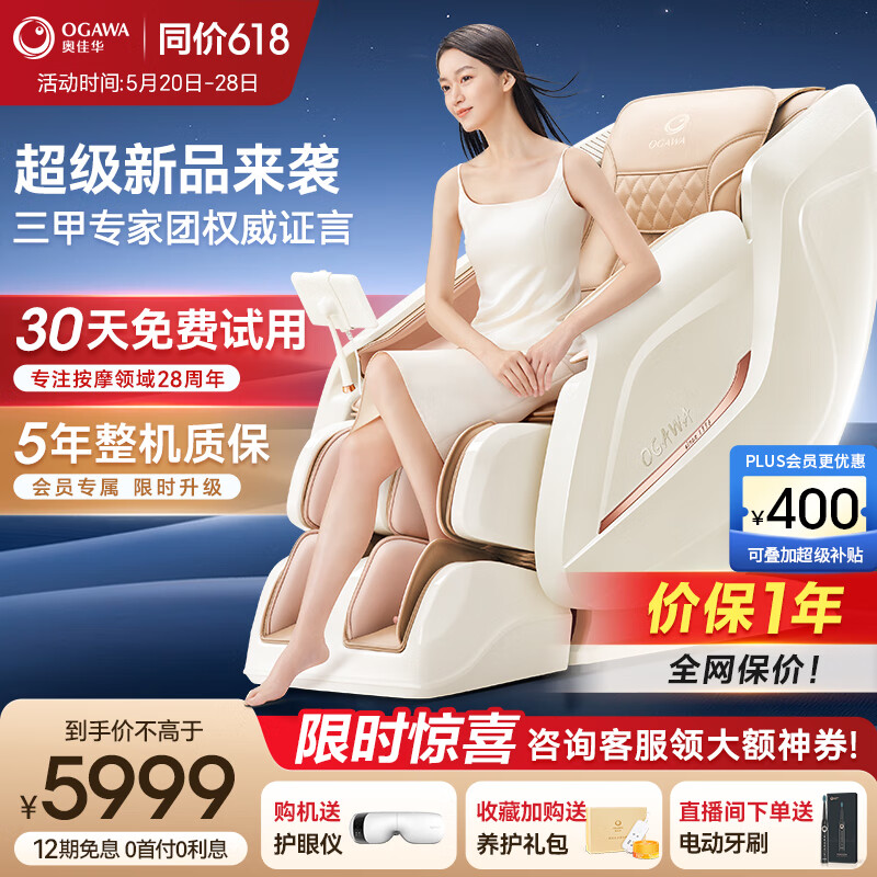 奥佳华(OGAWA)按摩椅2024新品家用太空舱全身零重力电动智能按摩3D机芯中医推拿小户型豪华头等舱椅子OG7508Pro 浅香云杏价格:8989.00元!