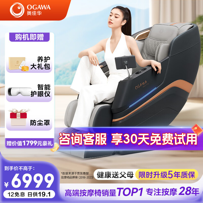 奥佳华(OGAWA)按摩椅家用太空舱2023年全自动按摩沙发舒适放松零重力可蓝牙全身按摩椅子送老人父母 M80幻影灰价格:6999.00元!