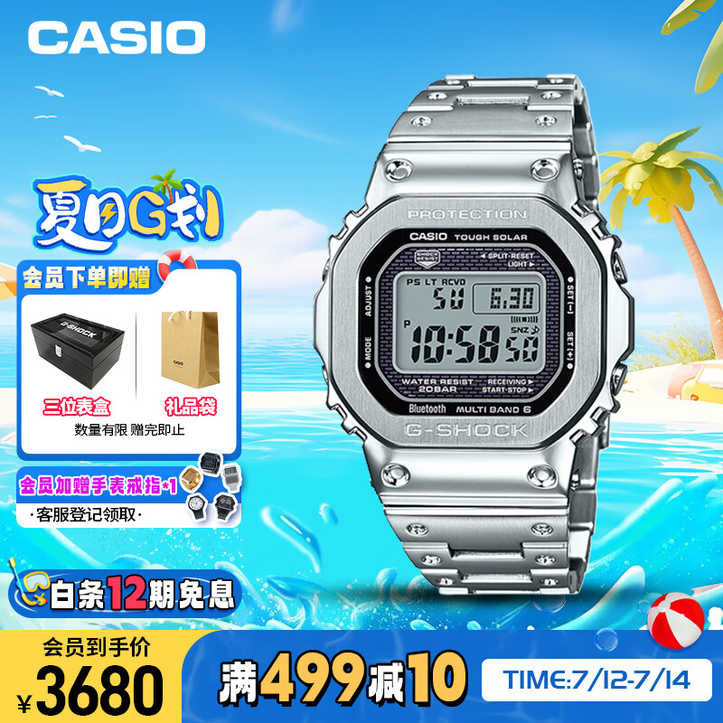 卡西欧(CASIO)手表男G-SHOCK经典小方块小银块电子表送父亲礼物GMW-B5000D-1PRT价格:3690.00元!