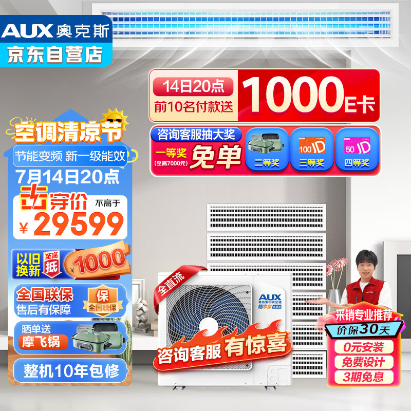奥克斯(AUX)中央空调大6匹一拖六家用小多联机风管机1级能效全直流变频嵌入式空调适用五室一厅DLR-H160W(G1)价格:29589.00元!