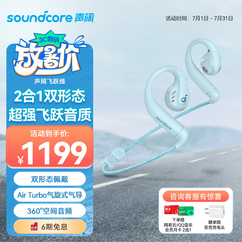 声阔飞跃线2合1不入耳蓝牙耳机AeroFit Pro开放舒适音质颠覆骨传导无线运动跑步适用苹果华为手机蓝价格:1199.00元!