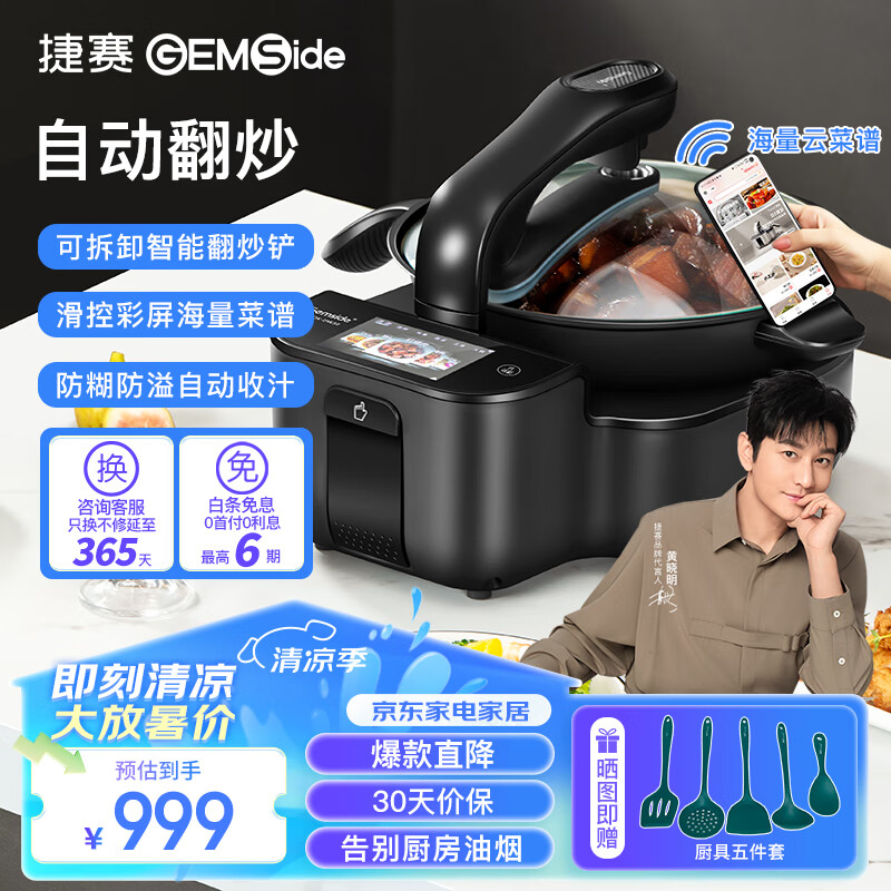 捷赛全自动智能炒菜机 多功能智能烹饪锅家用自动炒菜机器人无油烟不糊锅可定时预约LWOK-DW30 墨灰价格:999.00元!