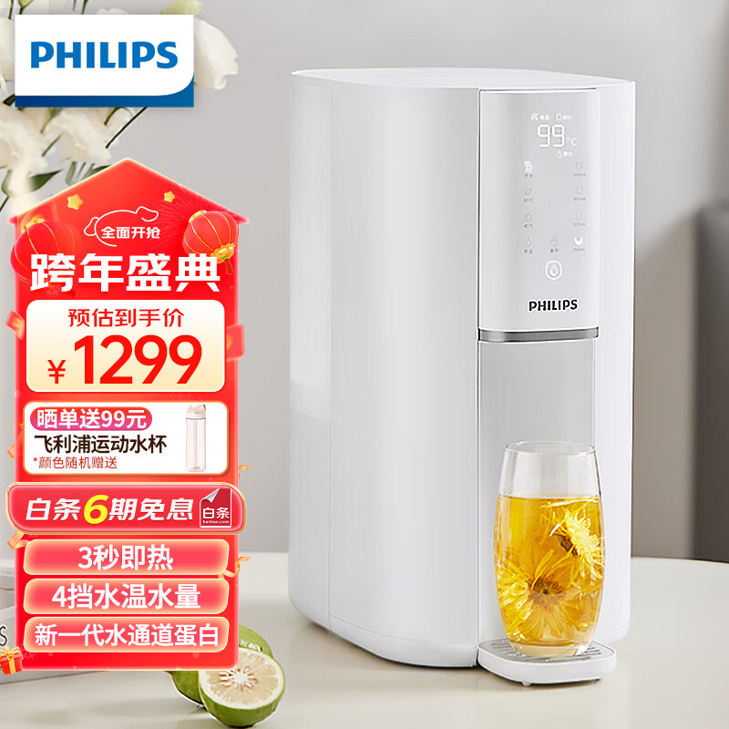 飞利浦(PHILIPS)加热净水器 家用即热饮水机 RO反渗透台式直饮水机 免安装净水机 净饮一体机ADD6815价格:1299.00元!