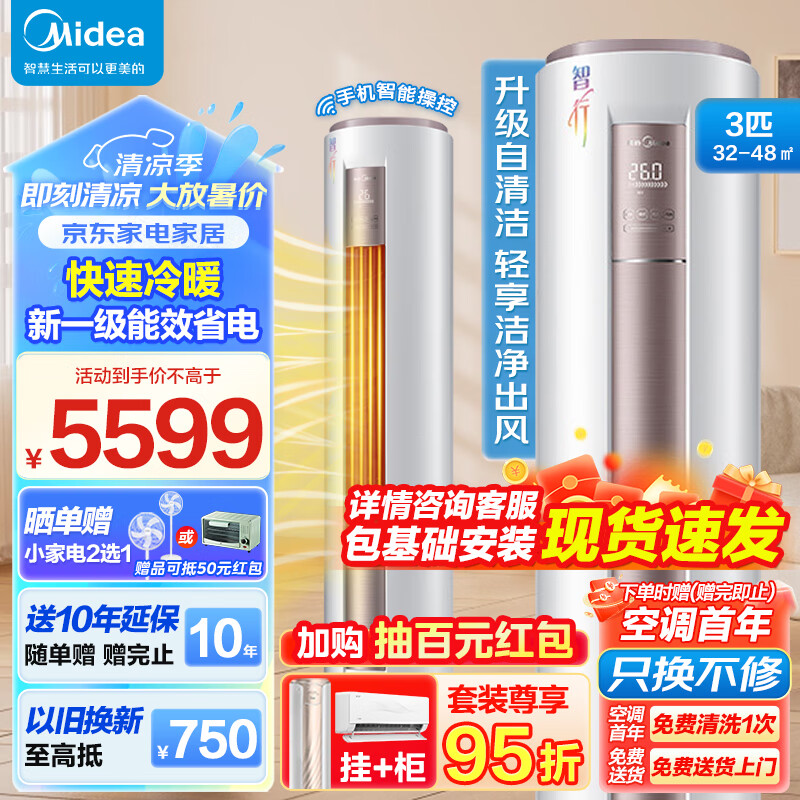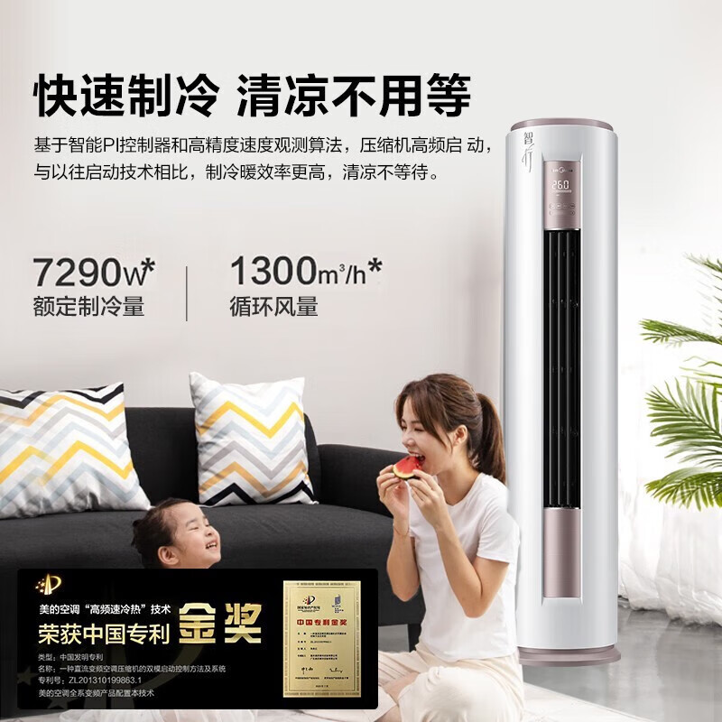 美的(Midea)空调立式3匹智行新一级能效变频冷暖客厅房间空调柜机智能家电 KFR-72LW/BDN8Y-YH200(1)A价格:5999.00元!