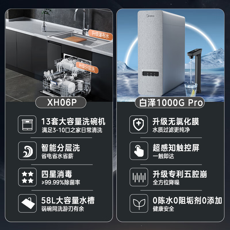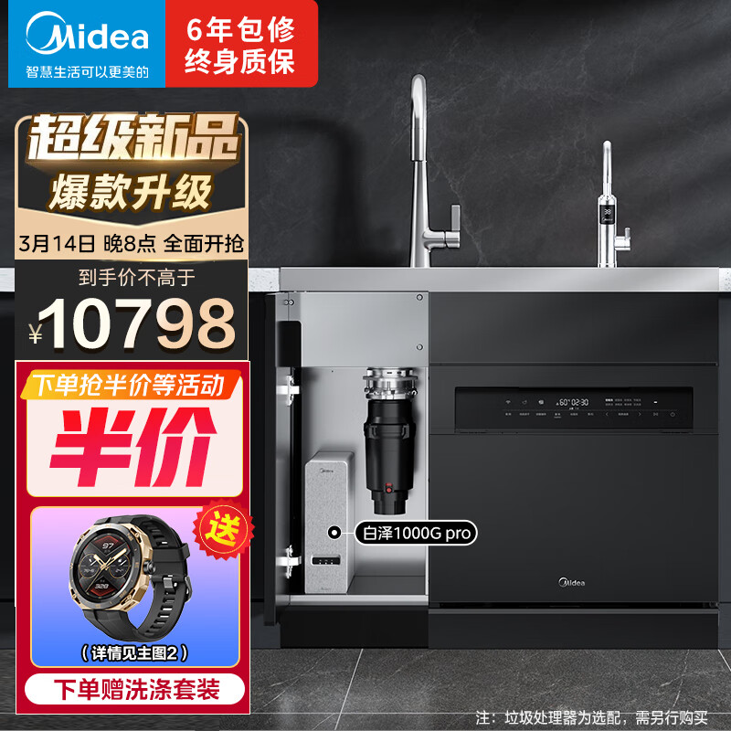 美的集成水槽XH06P 集成水槽洗碗机一体式 集成洗碗机 水槽洗碗机 白泽1000g pro+XH06P价格:10798.00元!