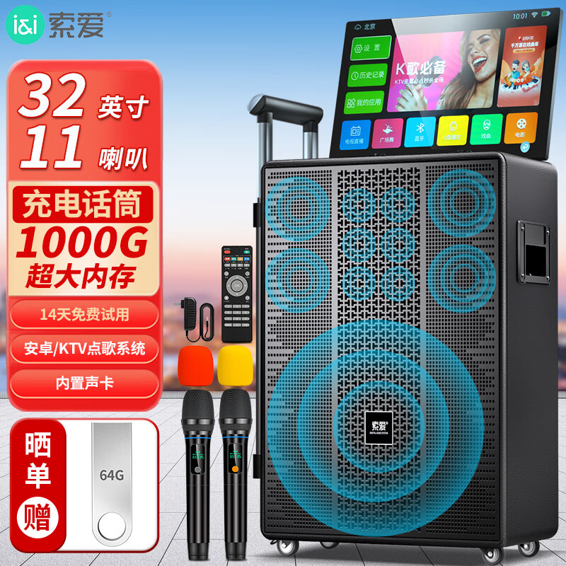 索爱(soaiy)K167家庭ktv音箱全套设备音响功放一体机套装带显示屏户外k歌卡拉ok点歌一体机家用移动音箱1000G价格:5393.60元!