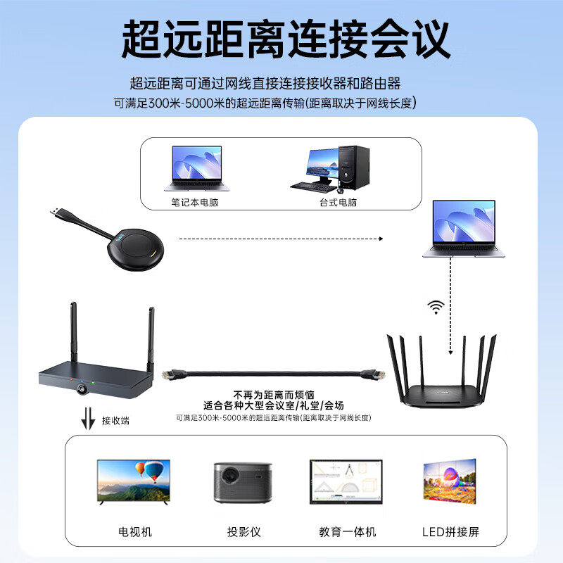 毕亚兹 企业级无线投屏器 USB一键无线投屏同屏 电脑手机平板HDMI高清传输器传电视投影仪显示器 R50价格:1399.00元!