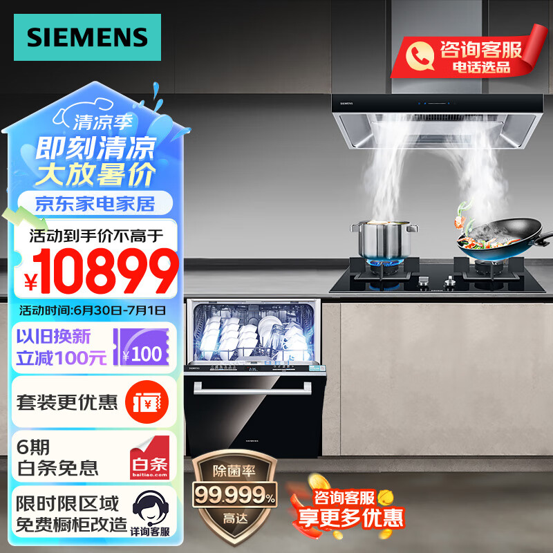 西门子14套嵌入式洗碗机智能开门烘干 5D环吸抽油烟机灶具套装(天然气)636Pro(含黑门板)+951W+F23MP价格:10899.00元!