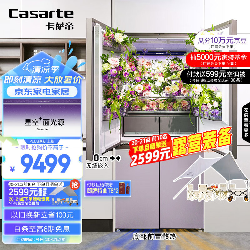 卡萨帝(Casarte)揽光星空507升超薄零嵌十字四开门家用大容量551姐妹款嵌入式电冰箱一级能效BCD-507WGCTDM4V3U1价格:9499.00元!