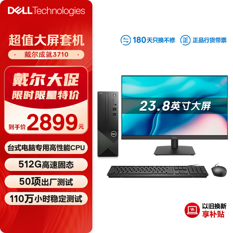 戴尔成就3710 台式电脑主机(酷睿12代i3-12100 8G 512GSSD)23.8英寸大屏 高性能办公 图文 教育学习价格:2899.00元!