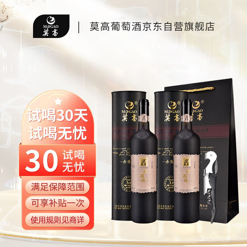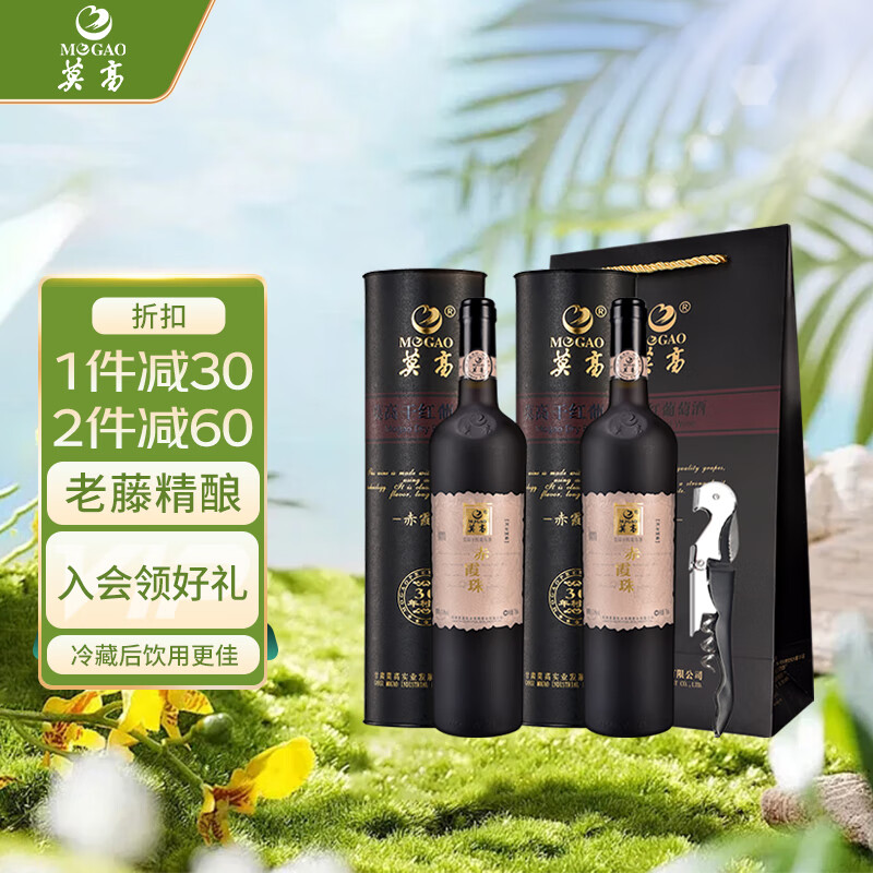 莫高(MOGAO)红酒干红葡萄酒 赤霞珠30年树龄 750ml*2双支红酒礼盒装送礼价格:268.00元!