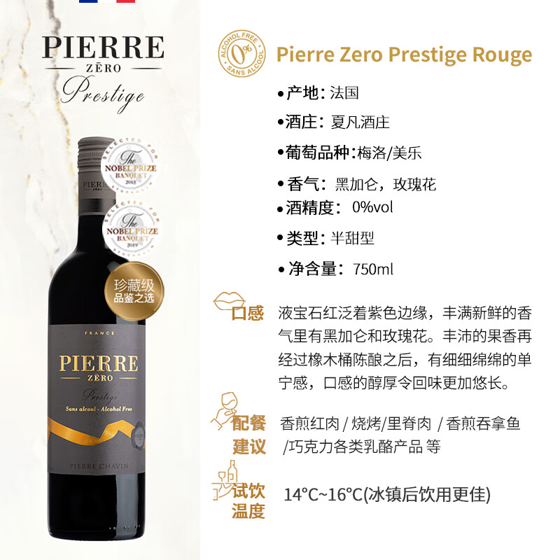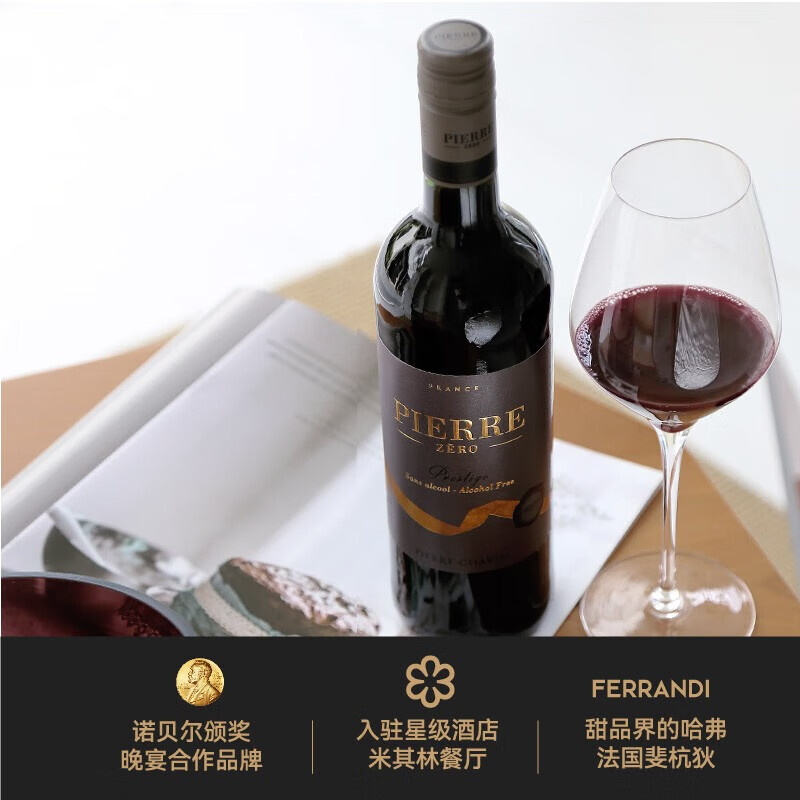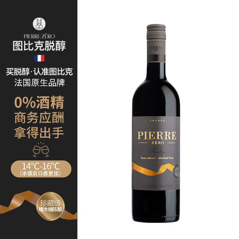 图比克法国PIERRE ZERO梅洛珍藏无醇葡萄酒无酒精脱醇0度红酒 750ml*1瓶价格:169.00元!