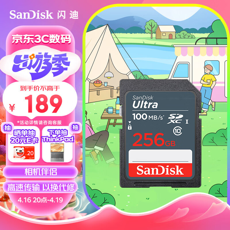 闪迪(SanDisk)256GB SD内存卡 高速版读速100MB/s 数码相机 摄像机存储卡 支持高清视频价格:189.00元!
