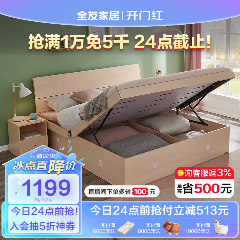 全友家居 双人床高箱储物床板式床现代简约主卧室床1.8x2米家具106302价格:1712.86元!