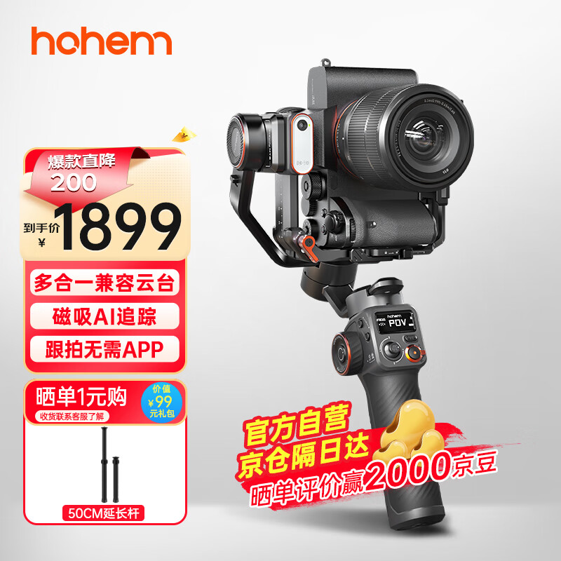 浩瀚(hohem)MT2 kit手机微单运动相机稳定器 三轴防抖 四合一多功能云台 自带AI追踪模块价格:2179.00元!