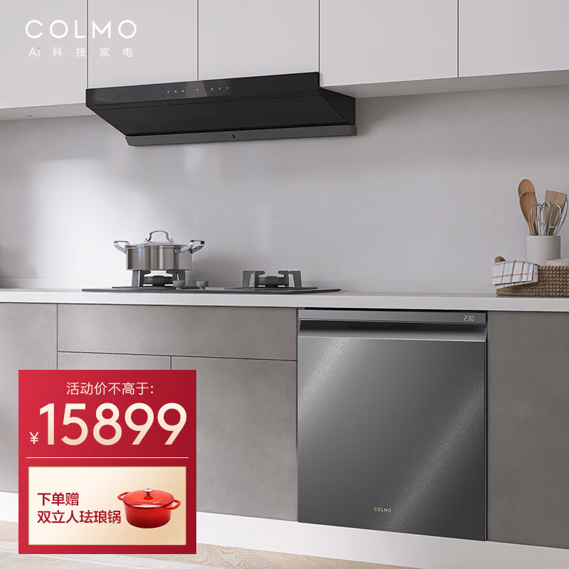 COLMO 厨房烟灶洗三件套 18套三层储存洗碗机 28大风量 5.2kW火力 高温蒸汽洗烟灶套装SK33+S68MAX+EF2价格:17499.00元!