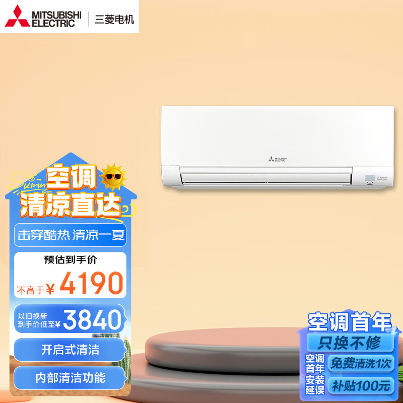 三菱电机13-21㎡适用 新3级能效 1.5匹 变频 冷暖 空调挂机 以旧换新 开启式清洁 MSZ-DZ12VA价格:4190.00元!