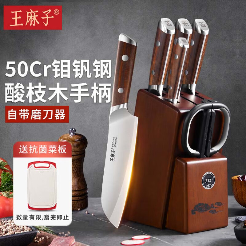 王麻子厨房刀具套装 50Cr钼钒钢流云刀具菜刀7件套组合带剪刀价格:599.00元!