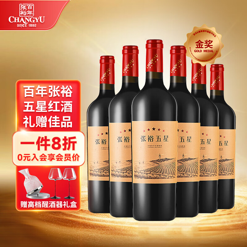 张裕(CHANGYU)五星金奖赤霞珠干红葡萄酒 750ml*6瓶整箱装 国产红酒价格:1788.00元!