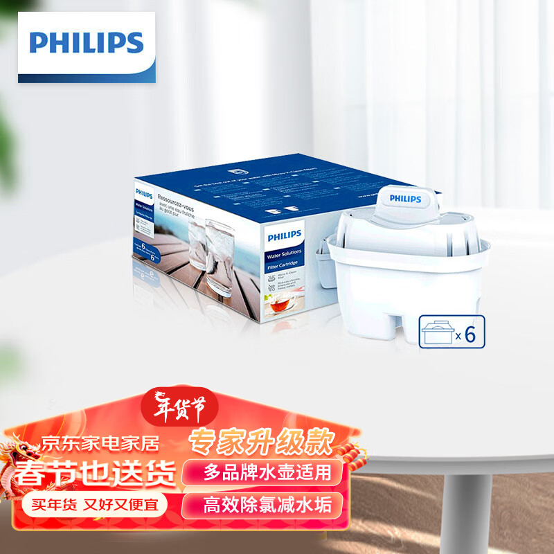 飞利浦(PHILIPS)家用净水壶滤芯 滤水壶净水器去除水垢专家版滤芯AWP210 6枚装价格:129.00元!