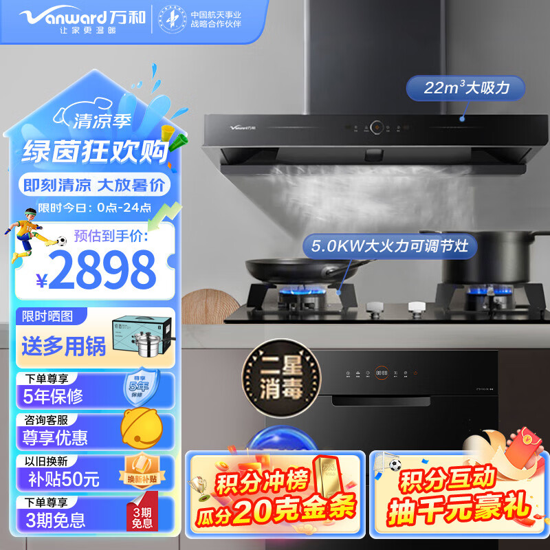 万和(Vanward)烟灶消三件套 厨房多件套 欧式大吸力油烟机燃气灶具消毒柜套装X739A+B7L51+ZTD110Q-D8(天然气)价格:2898.00元!
