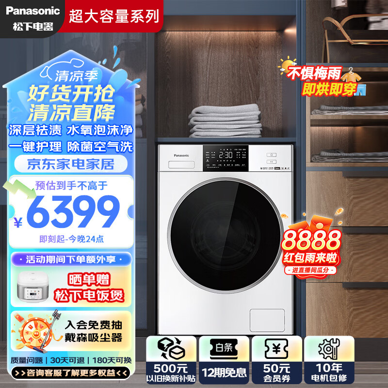 松下(Panasonic)滚筒洗衣机全自动洗烘一体12公斤大容量 全屋洗 水氧泡沫净 除菌空气洗 1.1高洗净比 XQG120-6NW05价格:6399.00元!