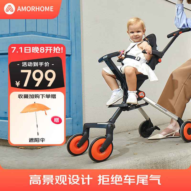 AMORHOME遛娃神器婴儿推车1-3岁可坐可躺轻便折叠宝宝溜娃 折叠小易收橘色价格:999.00元!