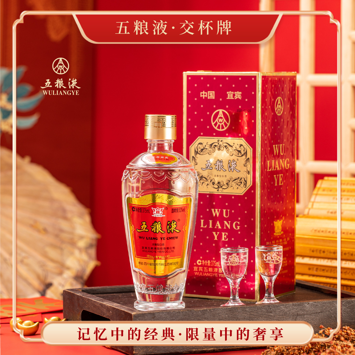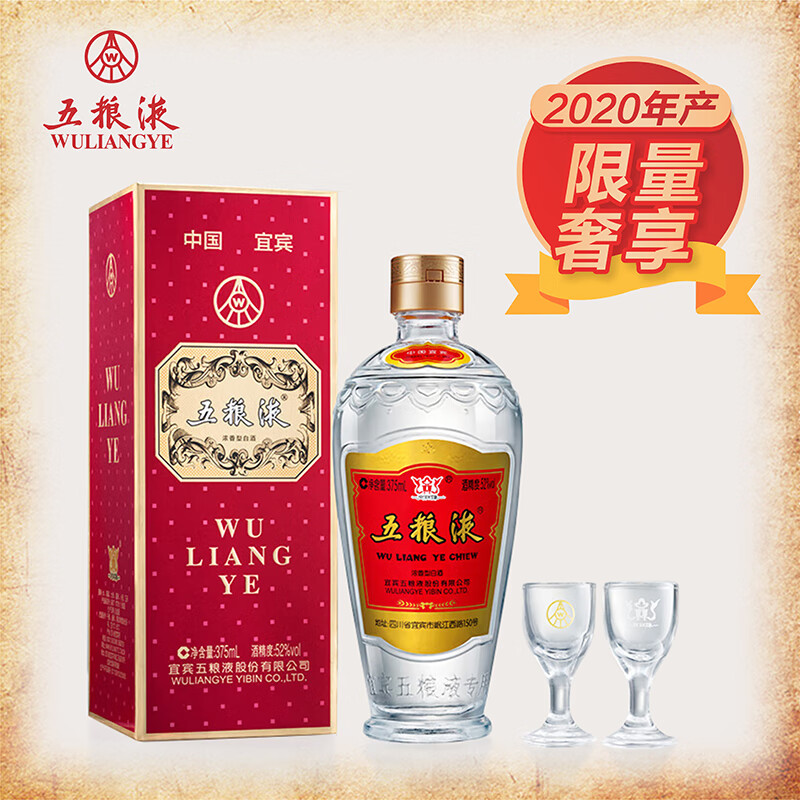 五粮液 2020年交杯牌 交杯酒 浓香型白酒 52度 375ml 单瓶装价格:1059.00元!