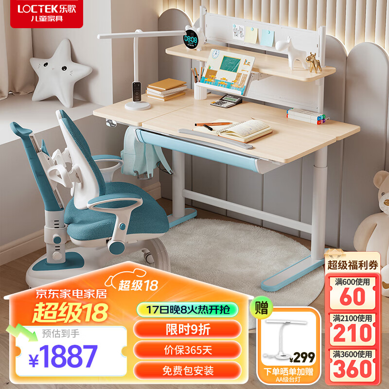 乐歌(Loctek)智能电动儿童升降学习桌书桌中小学生写字桌椅套装实木 EC2 1.1米价格:2497.00元!