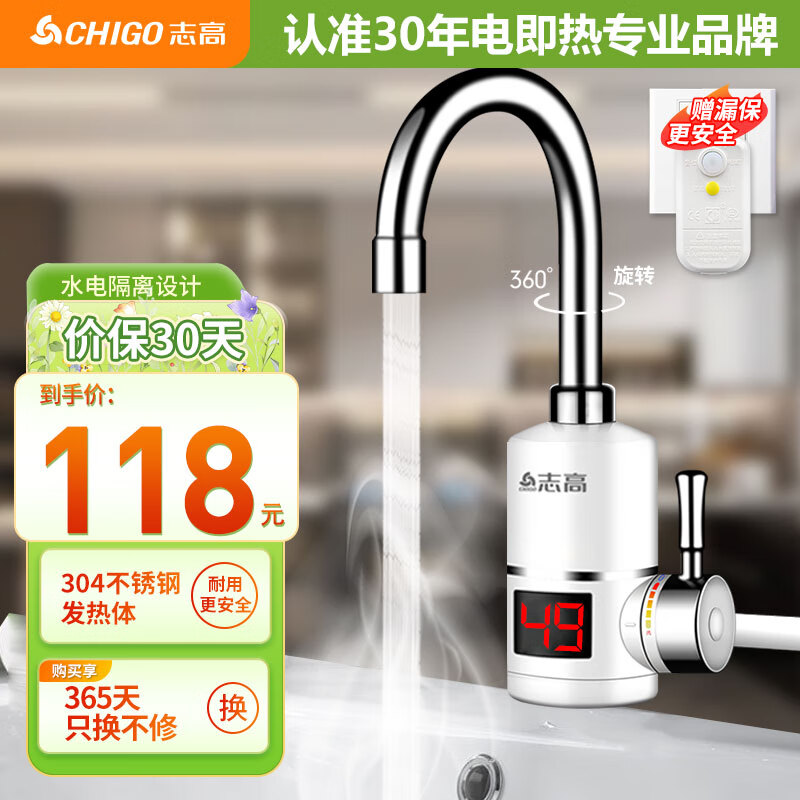 志高(CHIGO)电热水龙头 快热厨房小厨宝 加热热水宝加热器即热式电热水器速热阳台水龙头侧进水ZG-ZS811-H5C价格:118.00元!