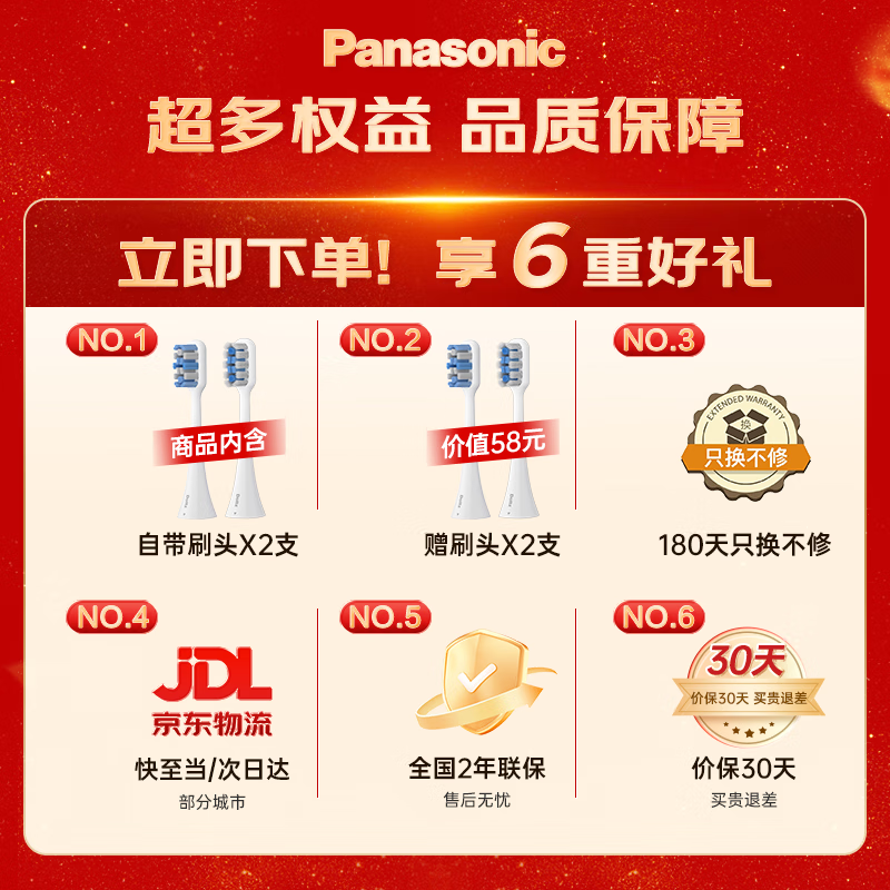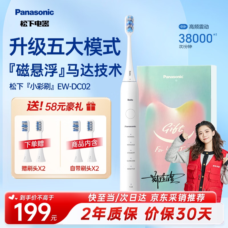松下(Panasonic) 电动牙刷小彩刷情侣款 软毛成人磁悬浮声波震动清洁护龈 情侣礼物送男友送女友DC02白色价格:199.00元!