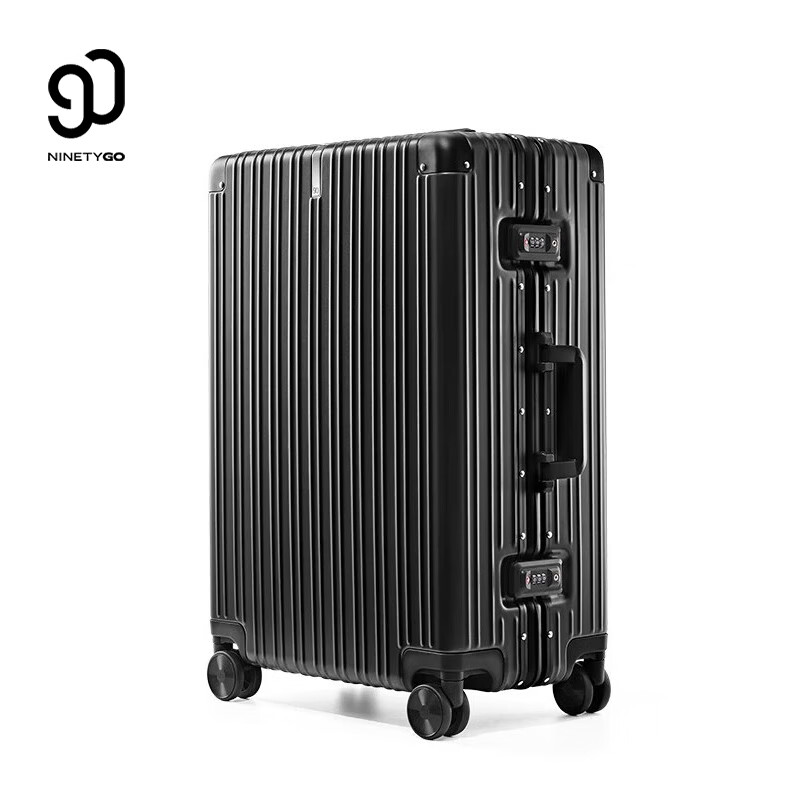 90分PC旅行箱轻质铝框行李箱防刮大容量拉杆箱24英寸托运箱曜石黑价格:469.00元!