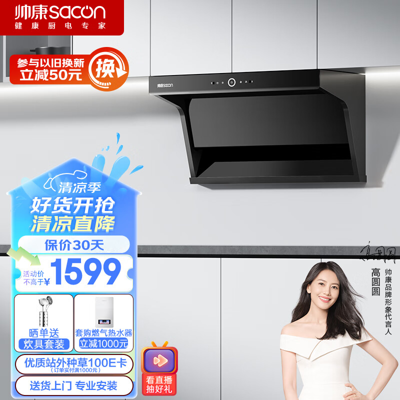 帅康(Sacon)抽油烟机顶侧双吸油烟机 家用23大风量7字机 挥手智控 自动清洗 Y8272价格:1599.00元!