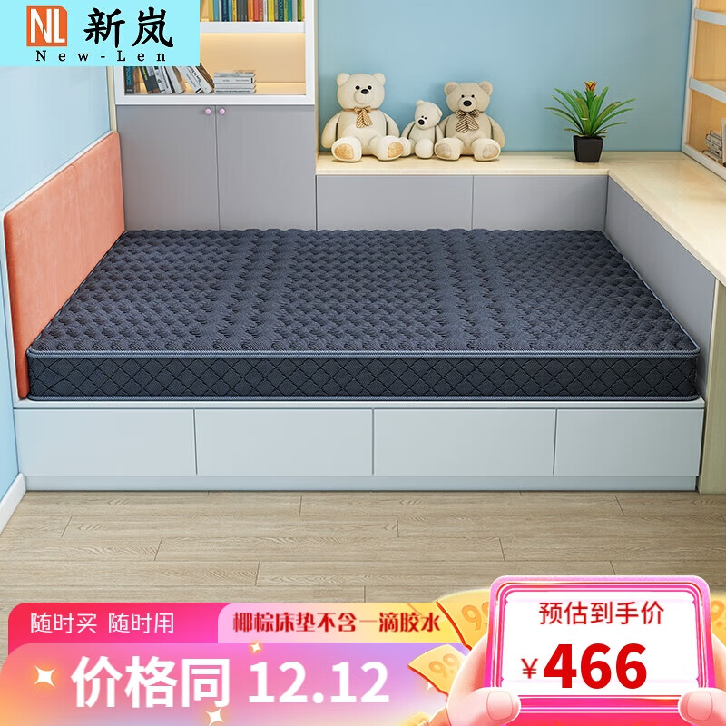 新岚椰棕床垫灰透气一体加乳胶榻榻米垫双人床垫硬床垫150*200*10cm价格:466.00元!