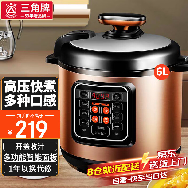 三角牌(Triangle)电锅家用高压锅多功能电高压锅高压电饭锅饭煲大容量煲汤 6升单胆(适合5-8人)价格:219.00元!
