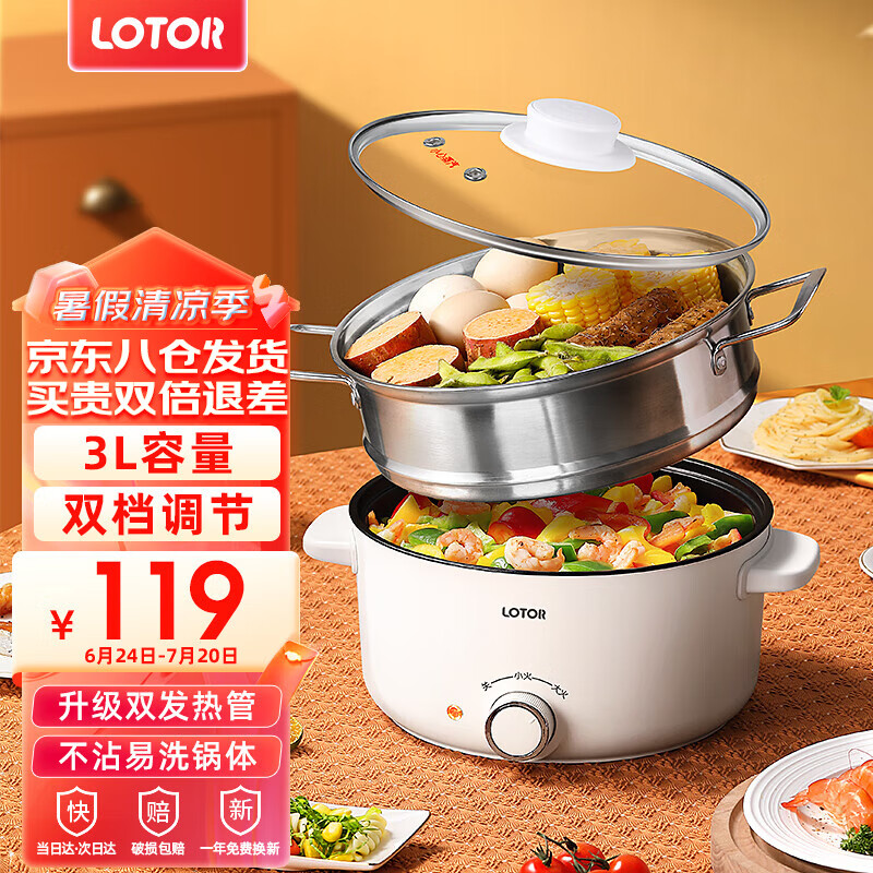 小浣熊电煮锅电炒锅迷你宿舍用煮面泡面电蒸锅电锅一体多功能电热锅电火锅婴儿辅食锅 钢蒸笼款电煮锅 3L价格:119.00元!