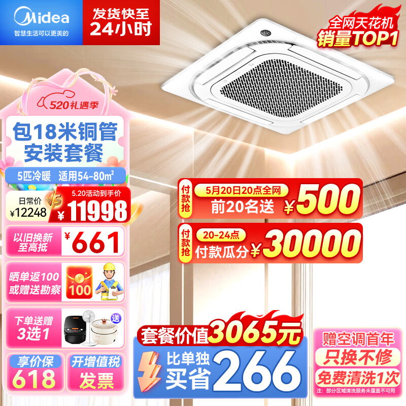 美的(Midea)5匹天花机空调吸顶吊顶空调 商用中央空调嵌入式一拖一380v包18米铜管安装RFD-120QW/BSDN8Y-D(B3)价格:12248.00元!
