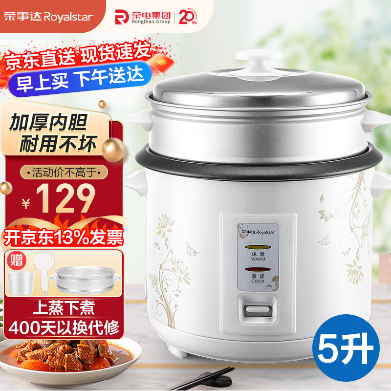 荣事达(Royalstar)电饭煲电饭锅家用传统老式直身锅5L大容量带蒸笼RZ-50B价格:129.00元!