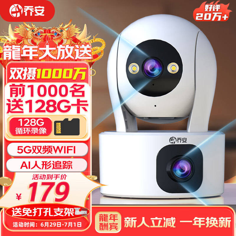 乔安双摄1000万摄像头监控无线wifi网络高清夜视监控器360度无死角带夜视全景云台家用监控手机远程价格:179.90元!