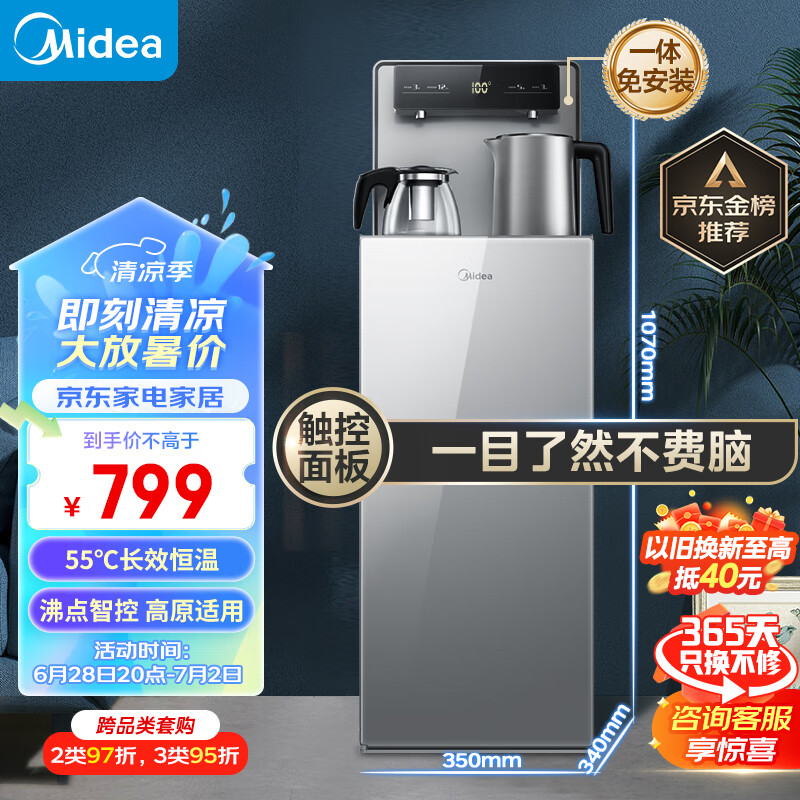 美的(Midea)茶吧机立式饮水机家用立式触控屏多功能背板下置式桶装水高原可用温热型 YR1906S-X价格:799.00元!