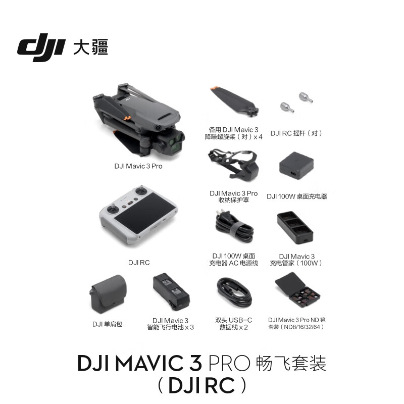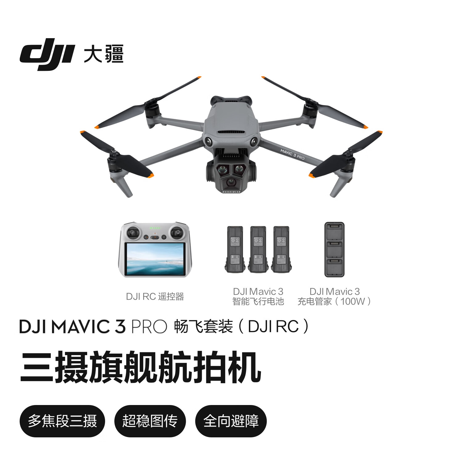 大疆 DJI Mavic 3 Pro 畅飞套装(DJI RC)御3三摄旗舰航拍机 哈苏相机 高清专业航拍器+随心换 1 年版价格:19176.00元!