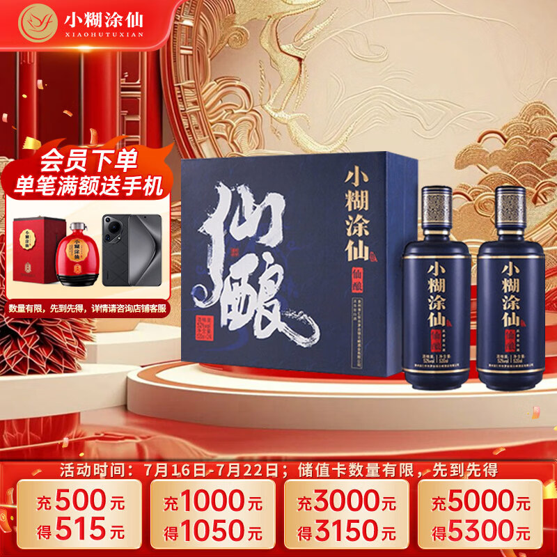 小糊涂仙 仙酿礼盒 浓香型白酒 52度 520ml*2瓶 礼盒装 贵州 送礼佳品价格:419.00元!