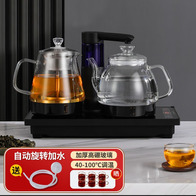 FUNORK 全自动上水电热烧水壶煮泡茶专用茶台一体机保温抽水茶具套装家用茶桌茶几嵌入式 自动玻璃-蒸茶款黑色(37x20cm)价格:269.00元!