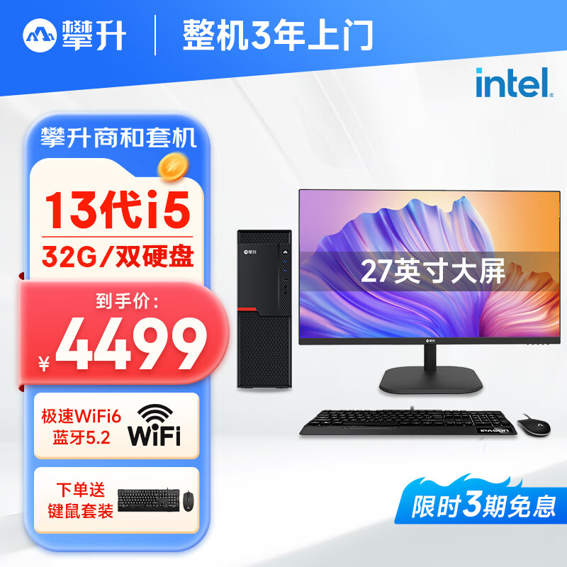 攀升商和S2 设计师办公商用台式电脑主机(i5-13400F 32G 512G+2T 4G独显 WiFi6)27英寸整机diy组装机价格:4499.00元!