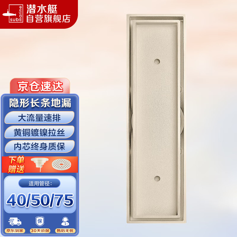 潜水艇(Submarine)LTDC50-30黄铜镀镍卫生间长条淋浴地漏 隐形30cm镶嵌地砖地漏价格:328.00元!