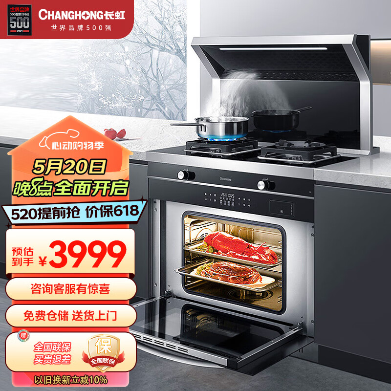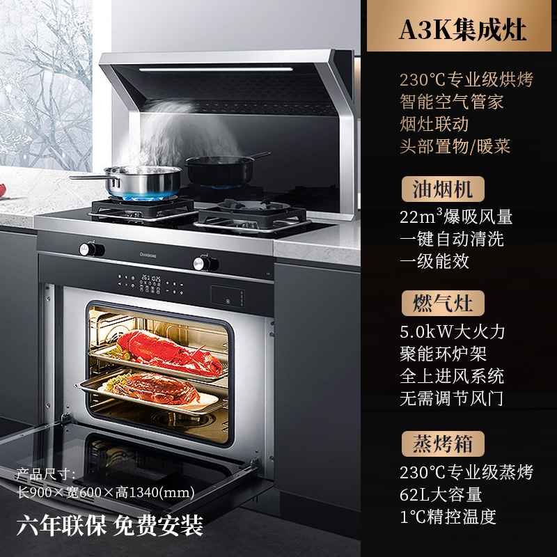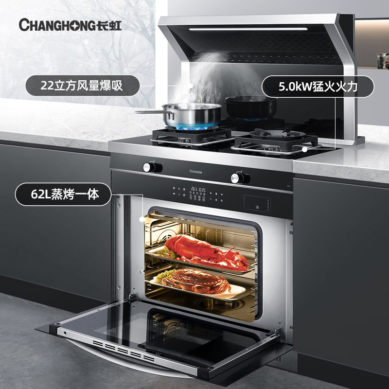 长虹 蒸烤一体集成灶家用蒸箱烤箱一体机 大吸力侧吸式抽油烟机燃气灶具套装 JJZT-A3K(天然气)价格:5399.00元!