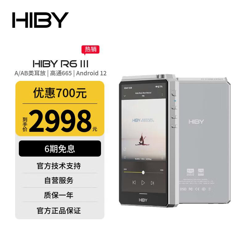 HiBy R6三代 海贝音乐播放器 无损HiFi安卓便携DSD解码MP3 A/AB类耳放 高通665 5.0英寸 银灰色价格:2998.00元!