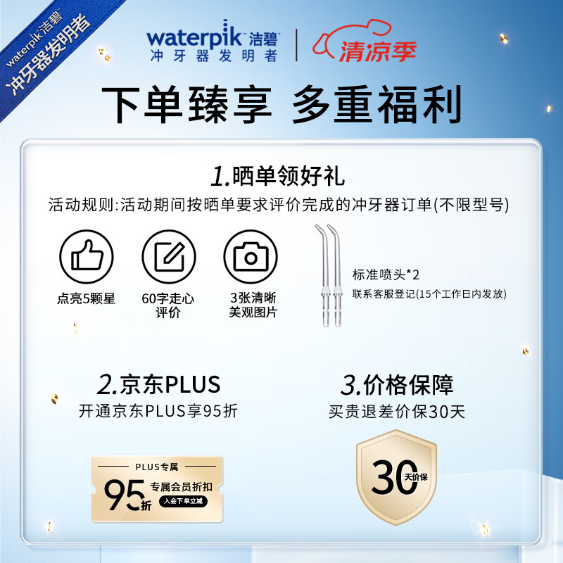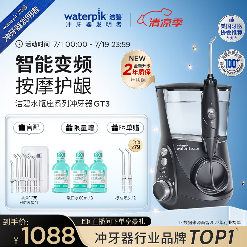 洁碧(Waterpik)冲牙器便携式电动洗牙器水牙线洁牙器家用立式预防牙结石全身水洗 水瓶座GT3-22价格:1208.00元!