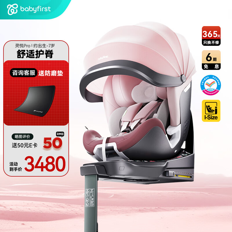 宝贝(Babyfirst)灵悦Pro婴儿童座椅汽车用0-4-7岁宝宝i-Size认证 海贝粉R155A价格:3980.00元!